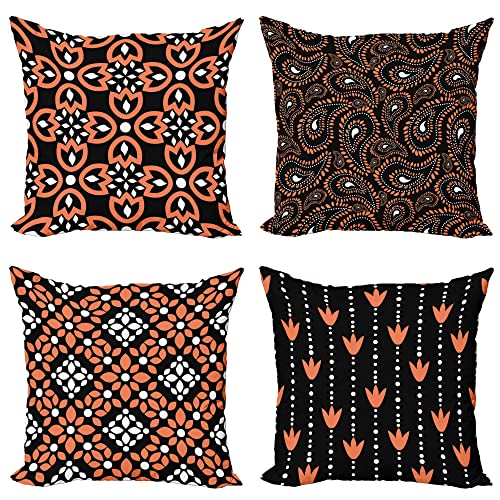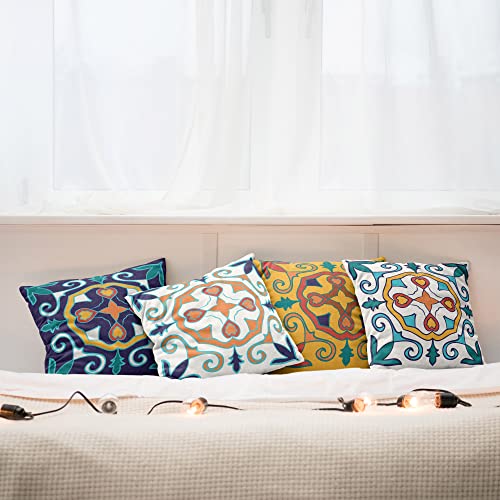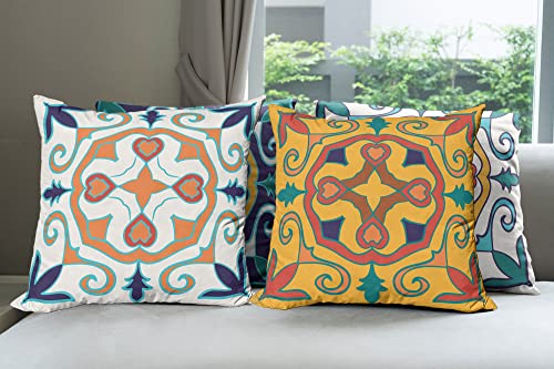 ABAKUHAUS Mosaik Dekokissen Kissenbezug 4er Pack, Vintage Abstrakte Kunst Konzept Modern Accent Doppelseitiger Digitaldruck, 40 cm x 40 cm, Indigo Marigold und Petrol