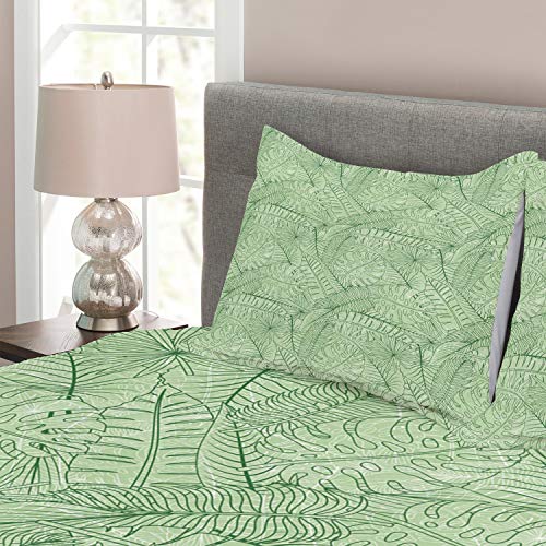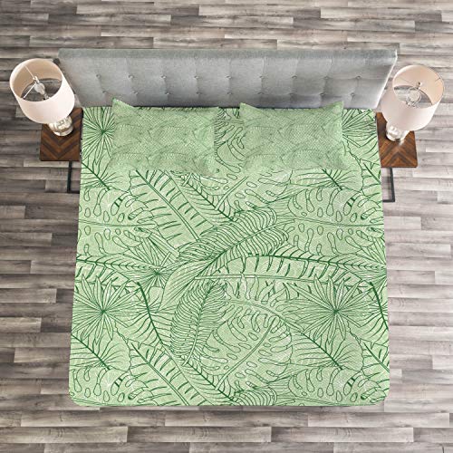 ABAKUHAUS Natur Tagesdecke Set, Überfüllte Blätter Konzept, Set mit Kissenbezügen farbfester Digitaldruck, für Doppelbetten 264 x 220 cm, Grün Hellgrün