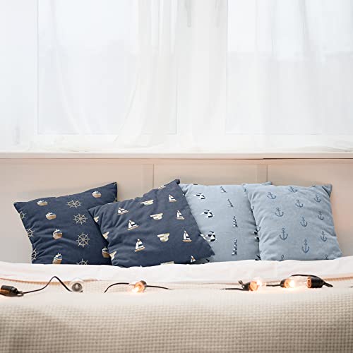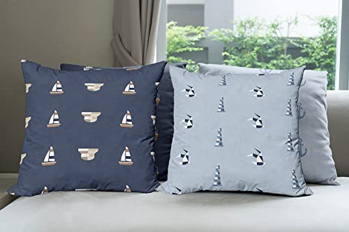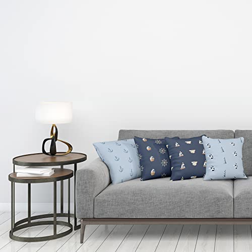 ABAKUHAUS Nautisch Dekokissen Kissenbezug 4er Pack, Anker Schiff Segeln Theme Modern Accent Doppelseitiger Digitaldruck, 40 cm x 40 cm, Umber Helles Himmelblau