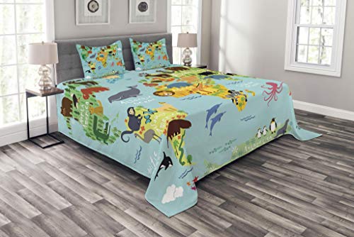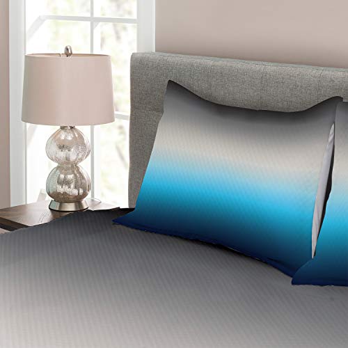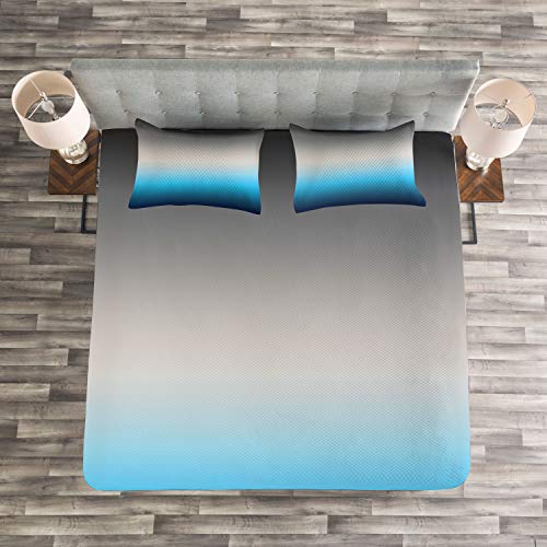 ABAKUHAUS Ombre Tagesdecke Set, Abstrakte Farbwechsel Muster, Set mit Kissenbezügen Romantischer Stil, für Doppelbetten 264 x 220 cm, Grau und blau