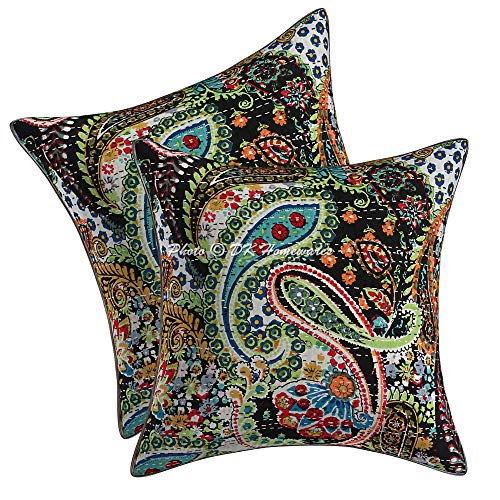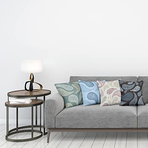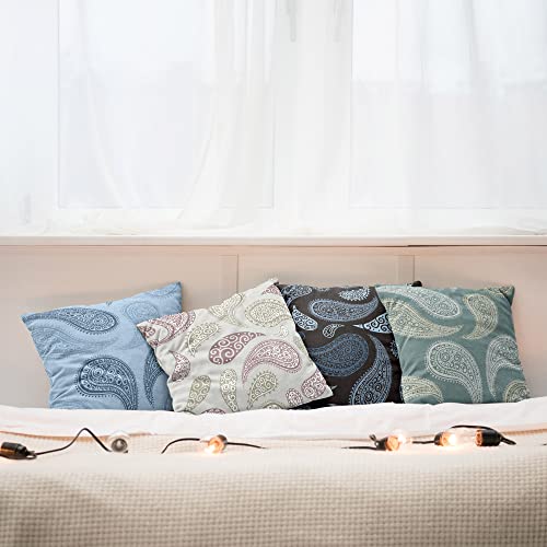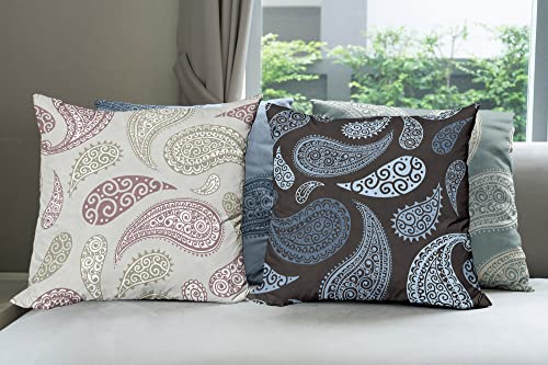 ABAKUHAUS Paisley Dekokissen Kissenbezug 4er Pack, Wirbelnde orientalische Motive Modern Accent Doppelseitiger Digitaldruck, 40 cm x 40 cm, Blau-Grau-Grau-Dunkelbraun