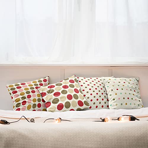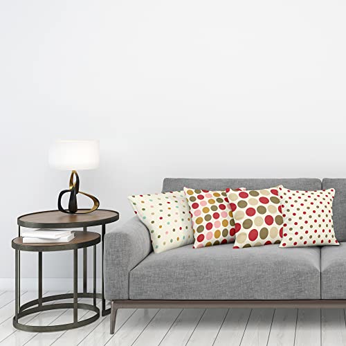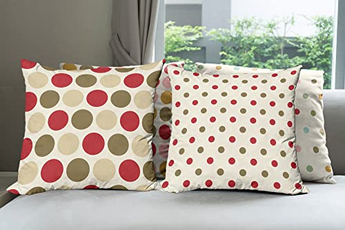 ABAKUHAUS Polka-Punkte Dekokissen Kissenbezug 4er Pack, Retro Vibes Abstrakt Modern Accent Doppelseitiger Digitaldruck, 60 cm x 60 cm, Rubin Armeegrün Elfenbein