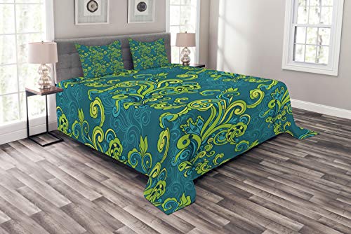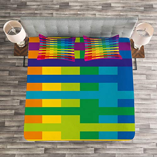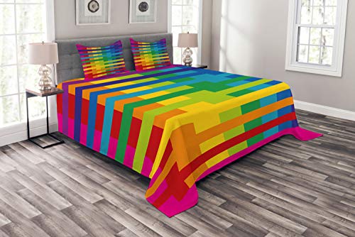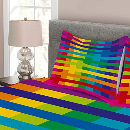 ABAKUHAUS Regenbogen Tagesdecke Set, Leuchtende Töne: Bunt, Set mit Kissenbezügen Mit Digitaldruck, für Doppelbetten 264 x 220 cm, Mehrfarbig