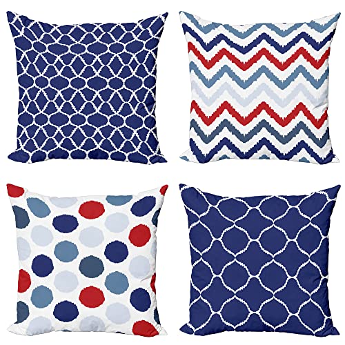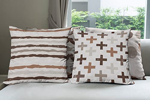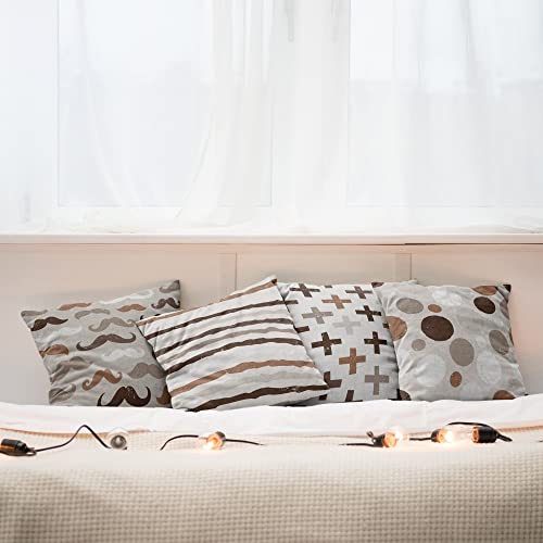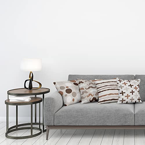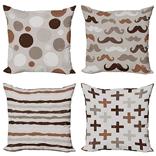 ABAKUHAUS Retro Dekokissen Kissenbezug 4er Pack, Schnurrbart Dots Stripes Plus Modern Accent Doppelseitiger Digitaldruck, 60 cm x 60 cm, Warmes Taupe und Braun