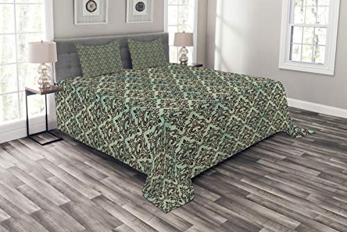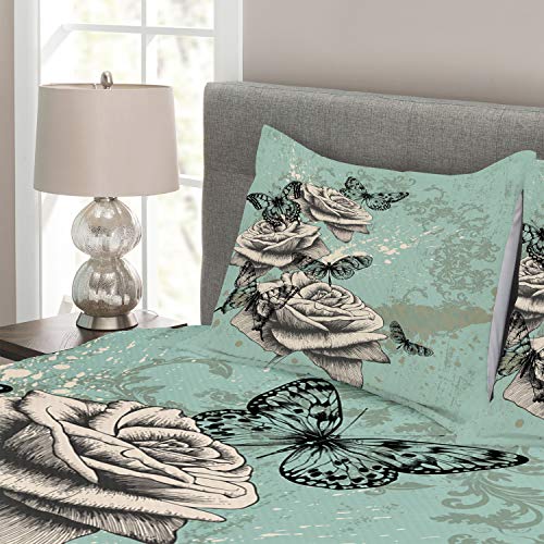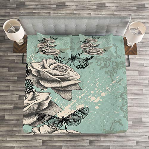ABAKUHAUS Rose Tagesdecke Set, Grunge Weinlese, Set mit Kissenbezügen luftdurchlässig, für Doppelbetten 264 x 220 cm, Seafoam Grau Schwarz