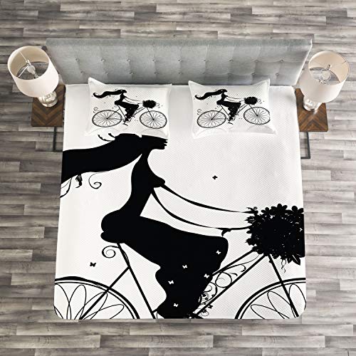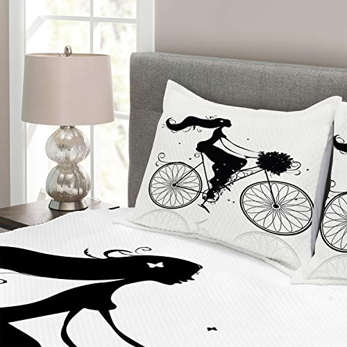 ABAKUHAUS Schwarz und weiß Tagesdecke Set, Frau Blumen, Set mit Kissenbezügen Sommerdecke, für Doppelbetten 220 x 220 cm, Weiß und Schwarz