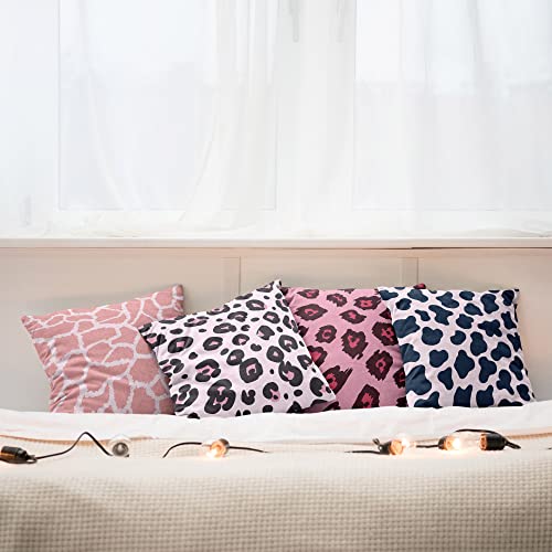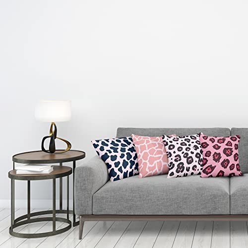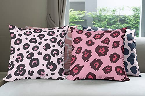 ABAKUHAUS Tierdruck Dekokissen Kissenbezug 4er Pack, Leopard und Kuhflecken Modern Accent Doppelseitiger Digitaldruck, 40 cm x 40 cm, Blassrosa Kastanienbraun und Koralle