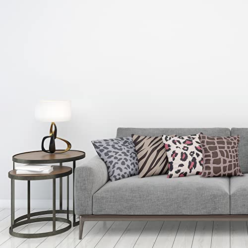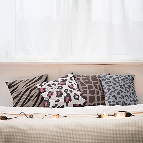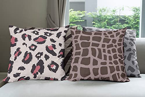 ABAKUHAUS Tierprint Dekokissen Kissenbezug 4er Pack, Zebra-Leoparden-Motiv Modern Accent Doppelseitiger Digitaldruck, 60 cm x 60 cm, Graubraun und Taupe