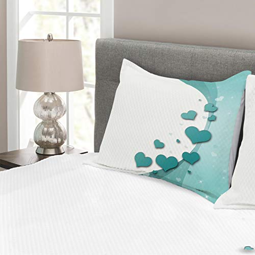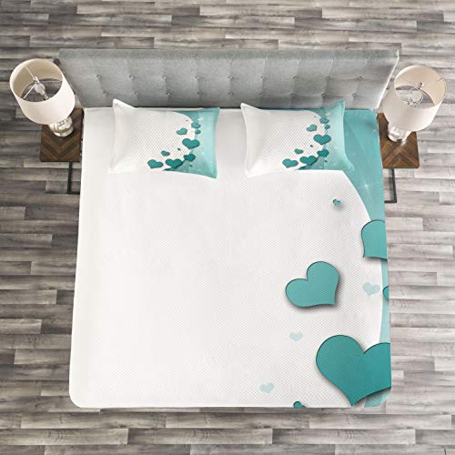 ABAKUHAUS Türkis Tagesdecke Set, Herzen Valentines, Set mit Kissenbezügen Kein verblassen, für Doppelbetten 220 x 220 cm, Türkis Weiß Teal