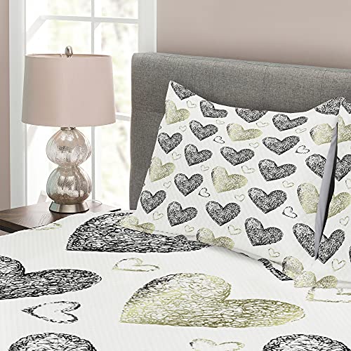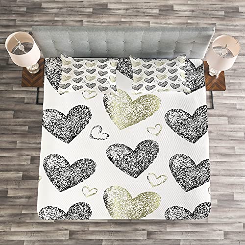 ABAKUHAUS Valentinstag Tagesdecke Set, Skizziert Herz, Set mit Kissenbezügen Weicher Stoff, 264 x 220 cm, Grau Olivgrün