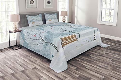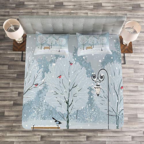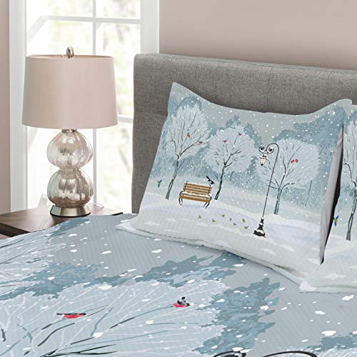 ABAKUHAUS Weihnachten Tagesdecke Set, Schnee in Park Weihnachtsbaum, Set mit Kissenbezügen farbfester Digitaldruck, für Doppelbetten 220 x 220 cm, Weiß Blau