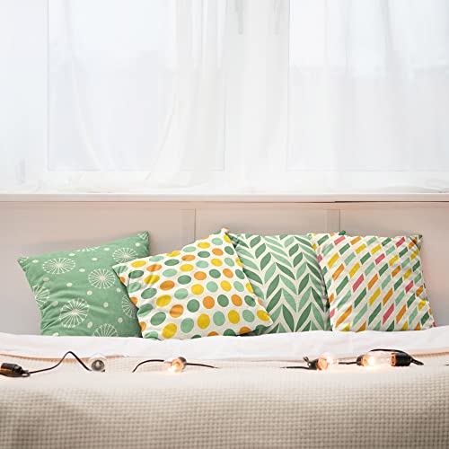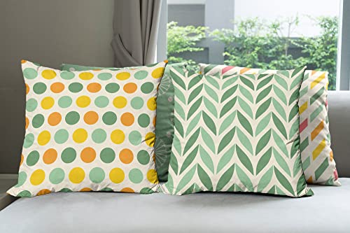 ABAKUHAUS Weinlese Dekokissen Kissenbezug 4er Pack, Geometrischer Spaß Retro Vibes Modern Accent Doppelseitiger Digitaldruck, 50 cm x 50 cm, Mintgrün Ringelblume Elfenbein