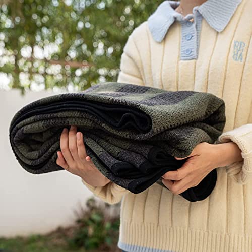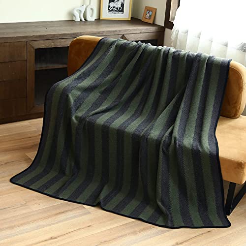 ACUSHLA Merino Wolldecke Wohndecke Warm & Kuschelig Waschbar, Großer Überwurf Ideal für draußen, Camping, Couch, Bett, Reisen – superweiche Wolldecke (Grüner Streifen)