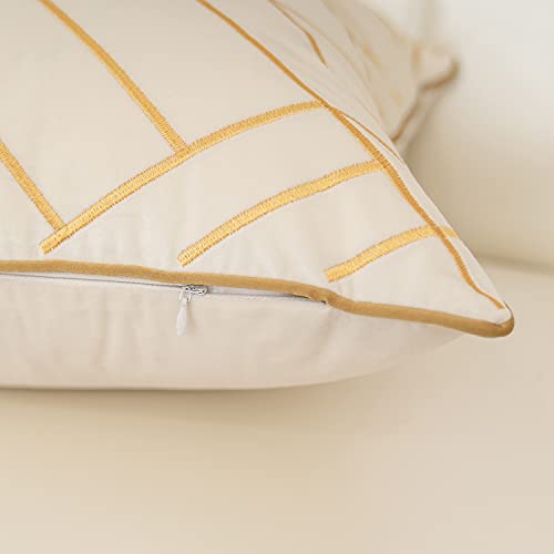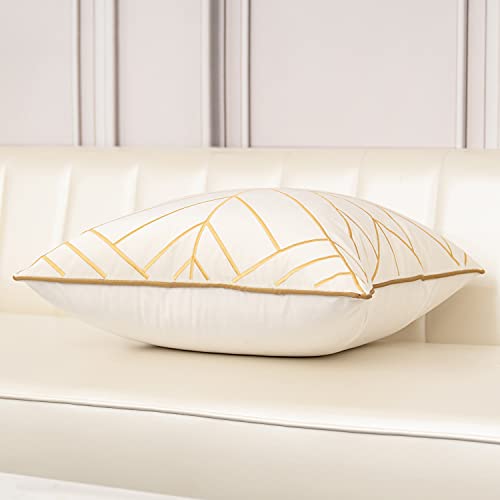 Aeckself 40,6 x 40,6 cm weiß gestreifte geometrische Linien Stickerei Samt Kissenbezug Luxus Modern Quadratisch Überwurf Kissenbezug Dekokissen für Couch Wohnzimmer Schlafzimmer Auto