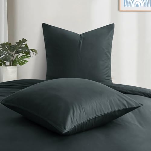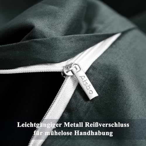 Aisbo Kissenbezug 80×80 Baumwolle 2er Set – weiche Kopfkissenbezug 80 x 80 Anthrazit mit Reißverschluss, 80x80cm Grau Pillow Cover Pillowcase