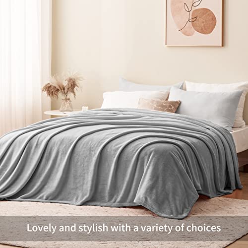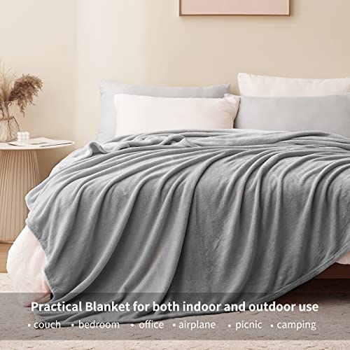Aisbo Kuscheldecke Flauschig Decke Grau – Fleecedecke 220×240 cm XXL Große Warme Couchdecke, Kuschlige Wohndecke Hellgrau Weich als Sofaüberwurf Blanket Sofadecke Bett für Winter