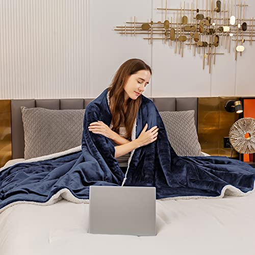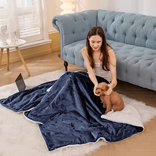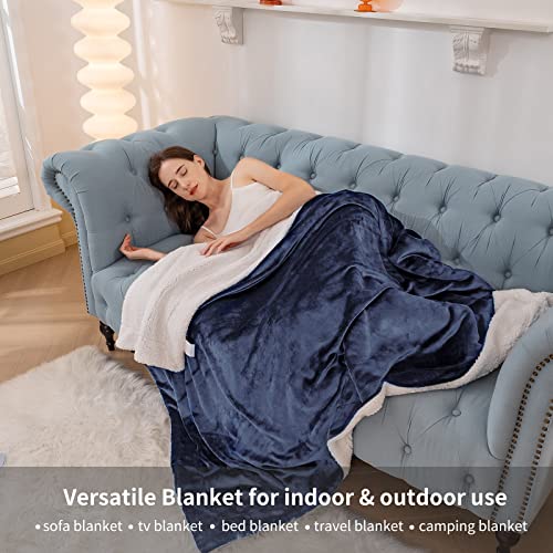 Aisbo Dicke Kuscheldecke Flauschig Blau – Extra Warme Decken für den Winter als Sofadecke Couchdecke 150×200 cm, XL Wohndecke aus hochwertige Sherpa Fleece, Soft Weich Blanket Marineblau