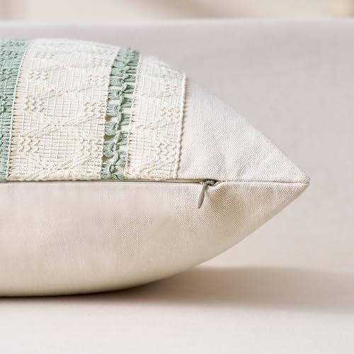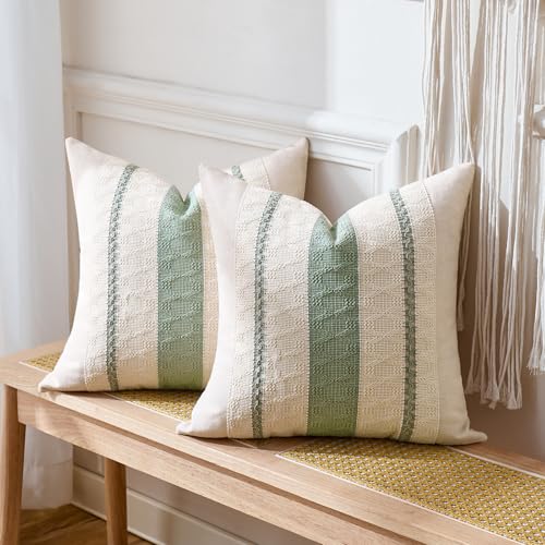 Aisybaklyn Kissenbezug 40×40 2er Set Boho Deko Kissenbezüge Baumwolle und Leinen Dekokissen Sofakissen Dekorative Kissenhülle Frühling Modern Salbeigrün Bauernhaus Gewebt Strukturiert Zierkissenbezug