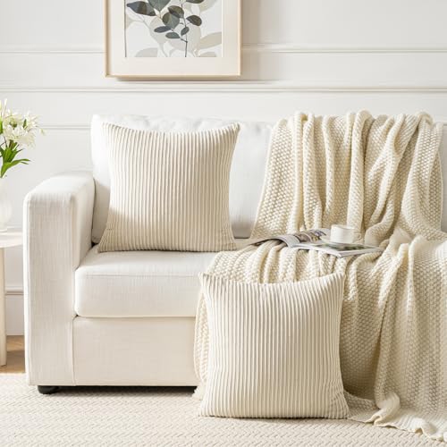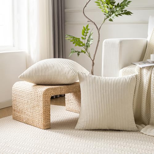 Aisybaklyn Kissenbezug Beige Sofakissen 40×40 cm Kordsamt Dekokissen Modern Weich Deko Zierkissenbezug mit Verstecktem Reißverschluss für Wohnzimmer Sofa Schlafzimmer 2er Set