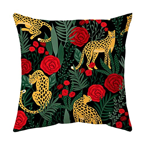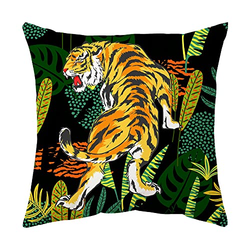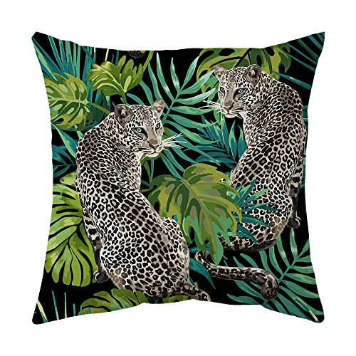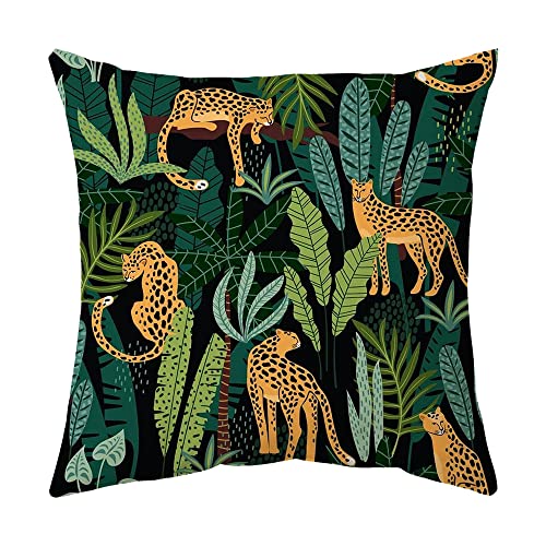 4er Set Kissenbezügein Schwarz Farbe mit Tropische Pflanze Muster, sehr kuschelig, haltbar und praktisch