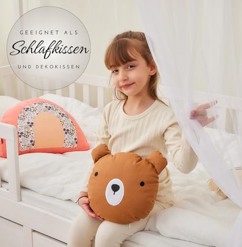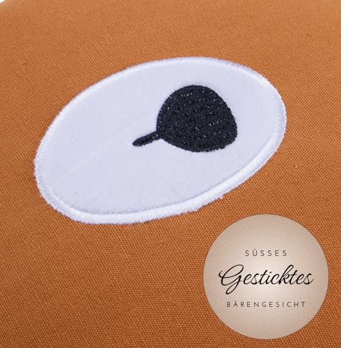 🎁 Das 28 cm große Kissen sämtliche 100 % Baumwolle hat eine weiche, antiallergene Füllung. Ein süßes Bärengesicht ist gestickt weiterhin weiche Material geben dem Kissen eine besondere Postanschrift