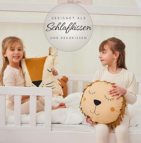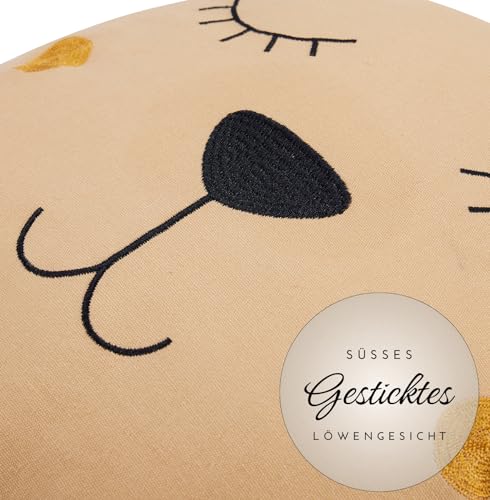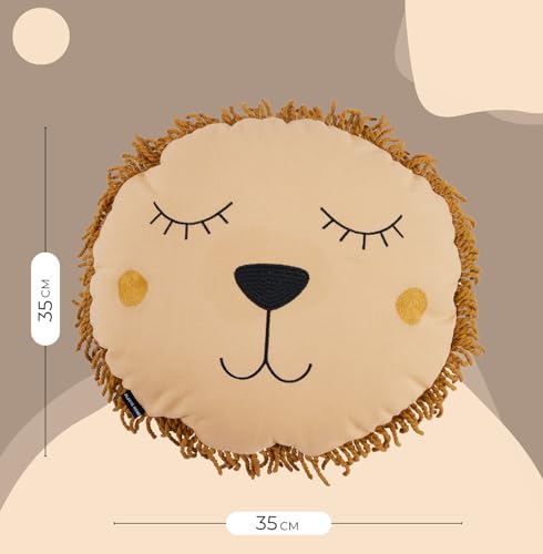 ALAVYA HOME® Dekokissen Kinderkissen Löwe für Hausbett Kinderbetten – D35 cm I Kuschelkissen Kinder Flauschig mit Füllung, Zierkissen für Babyzimmer Kinderzimmer Deko – 35 x 35 cm