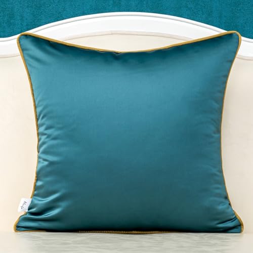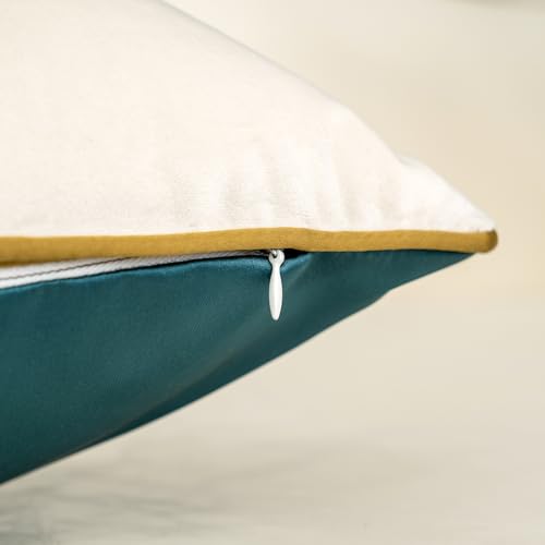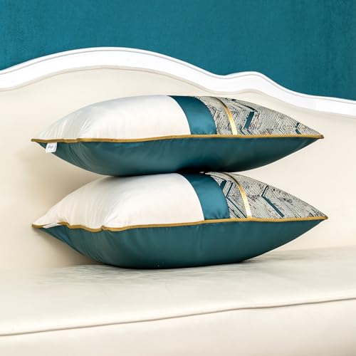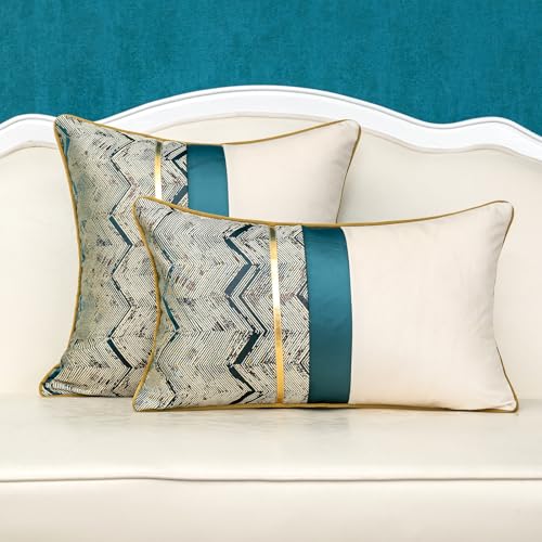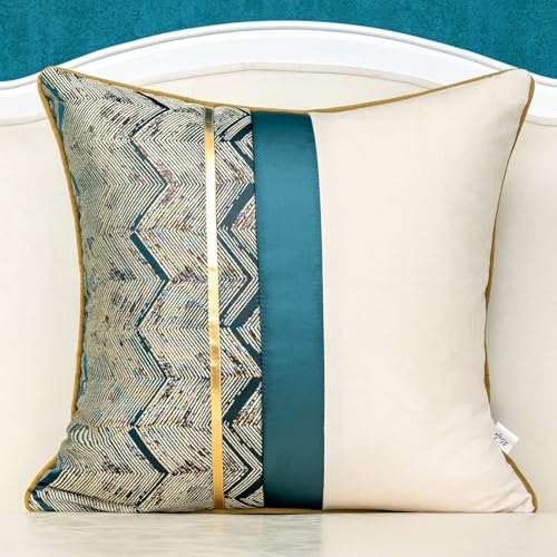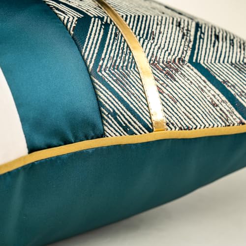 Alerfa 50,8 x 50,8 cm blaugrün weiß geometrisch gestreiftes Gold Leder Patchwork Samt Kissenbezug Luxus Modern Lendenwirbelkissen Dekokissen für Couch Sofa Wohnzimmer Schlafzimmer Auto
