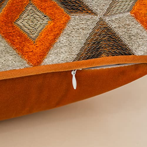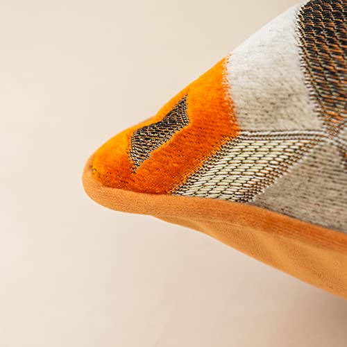 Alerfa Quadratisches Kissen, geometrisches Karomuster, Stickerei, Samt, luxuriös, modern, Dekokissen für Couch, Sofa, Wohnzimmer, Schlafzimmer, Auto, 50,8 x 50,8 cm, Orange