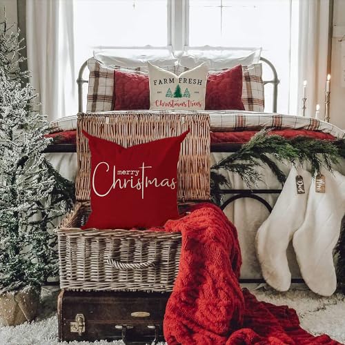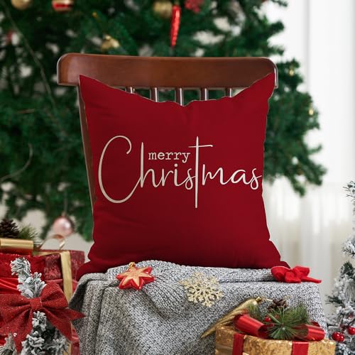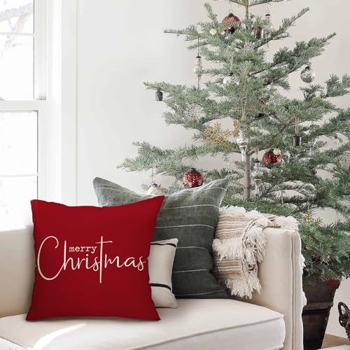 Allorry Weihnachts-Kissenbezüge Merry Christmas Dekokissen Dekorative Weihnachten Rot Baumwolltuch Leinen Tuch Kissenbezug Sofabezug Dekorative Rechteckige Länge 45,7 x 45,7 cm