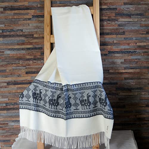 Alpaka Decke Wohndecke – Tagesdecke aus Alpakawolle 130×180 cm (Huancavelica weiß)