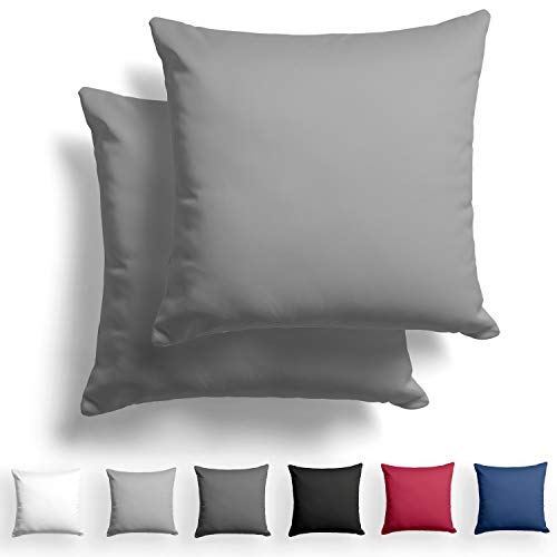 Alreya 2er-Set Mako Satin Kissenbezug 40 x 40 cm – 100% Baumwolle mit YKK Reißverschluss, Superweicher Kopfkissenbezug, Kissenhülle, Oeko-TEX® Standard Zertifiziert, Grau, nur Kissenbezug