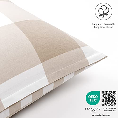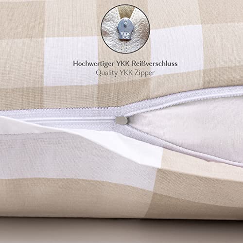 Alreya 2er-Set Renforcé Kissenbezug 40 x 40 cm – 100% Baumwolle mit YKK Reißverschluss, Superweicher Kopfkissenbezug 40×40, Kissenhülle, Braun Kariert, nur Kissenbezug