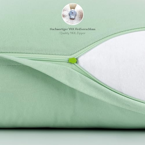 Alreya Kissenbezug 80 x 80 cm (2er Set) – Sommergrün – 100% Jersey Baumwolle – Kissenhülle für Kissen 80×80 cm, Jersey Kopfkissenbezüge, Superweicher Kissenbezüge 80×80 mit Reißverschluss