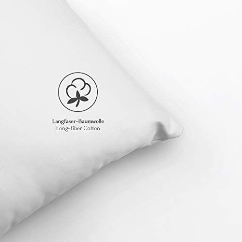 WEICH & FÜR ALLE JAHRESZEITEN: Mako-Satin Kopfkissenbezüge besteht zu 100% aus hochwertiger langfaseriger Baumwolle die von Knötchen und kurzen Baumwollfasern befreit ist. Mako-Satin Modelle sind sehr atmungsaktiv, dies hat zum Vorteil das man im Sommer weniger schwitzt und im Winter weniger friert – sie ist also für den ganzjährigen Einsatz bestens geeignet. Weiterhin zeichnen sich Mako-Satin Modelle durch eine hohe Weichheit und einen eleganten Glanz aus.