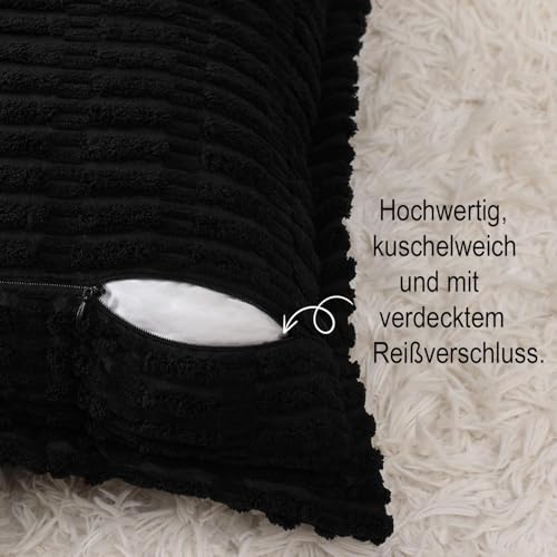 ALWINIA Kissenbezug Schwarz 40×40 aus Kordsamt 2er Set – Samt-Deko für Wohnzimmer & Schlafzimmer – Weiche & Kuschelige Kissenhüllen für Zierkissen & Dekokissen