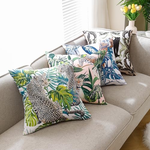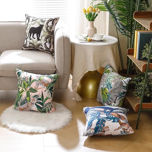 Dekokissen, wasserdicht, für Innen- und Außenbereich, weich, bequem, Standardgröße, 45,7 x 45,7 cm, quadratisch, für Bett, Couch, Sofa und Terrasse, Regenwald-Stil, 4 Stück