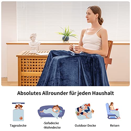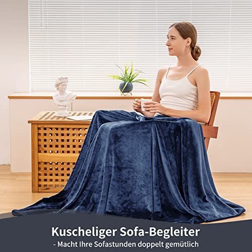 Amazon Brand – Umi Kuscheldecke Flauschig Decke Blau, Warme kleine Fleece Decke als Sofadecke Couchdecke, Wohndecke weich und plüsch für Couch,130×150 cm
