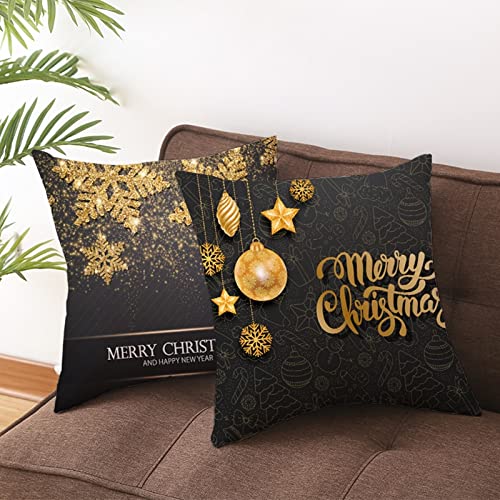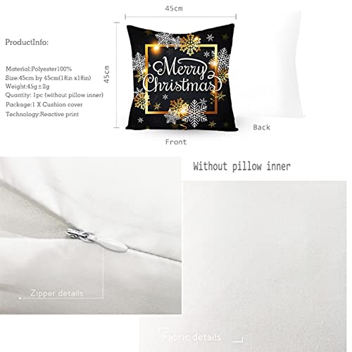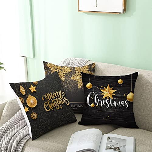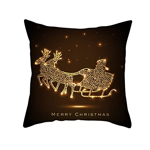 AMDXD 40x40cm Kissenbezug Weihnachten, Sternenlicht Santa Claus Hirsch Dekokissen aus Polyester Weich Bequem, Quadratische Kissenhülle für Wohnzimmer Schlafzimmer Büro Sofa, Schwarz Gold