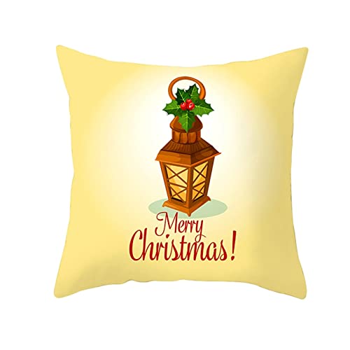AMDXD 40x40CM Weihnachten Kissenbezüge, Irregulär Streifen Weihnachtsbaum Schneeflocke Hirsch Dekokissen aus Polyester Weich Bequem für Wohnzimmer Schlafzimmer Dekor, Gelb