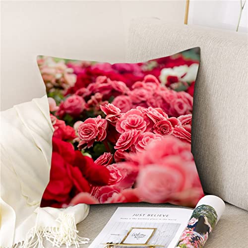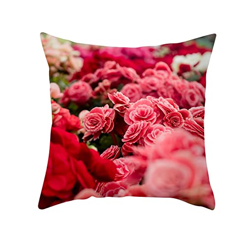 AMDXD Dekorative Zierkissenhülle, 45x45cm Dekokissen 1 Stücke Weiche Quadratisch Dekokissenbezüge mit Blumen Muster, in Polyester, für Autos Wohnzimmer Büro Sofa Dekoration (Polyester, Rosa Rot)