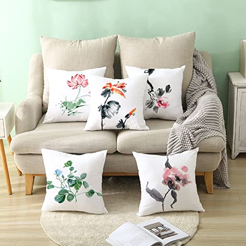 AMDXD Kissenbezug 40x40cm, Weiß Dekokissen Outdoor in Polyester mit Blumen Muster für Cafés Büro, Bequem Haus Dekor