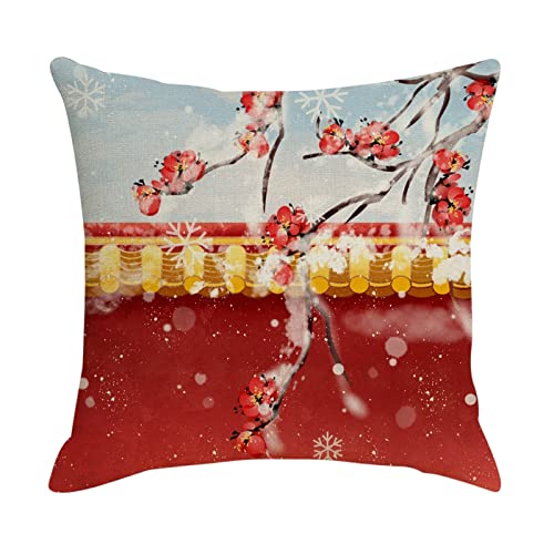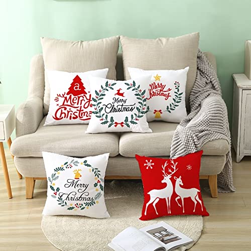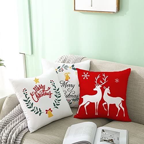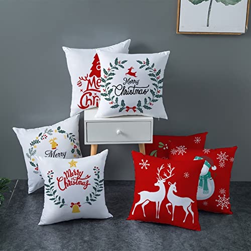 AMDXD Weihnachten Kissenbezug 45x45cm, Dekokissen Geschenk Kasten Merry Christmas Muster, in Polyester, für Zuhause Sofa, Schlafzimmer Dekor, Weiß Grün Rot