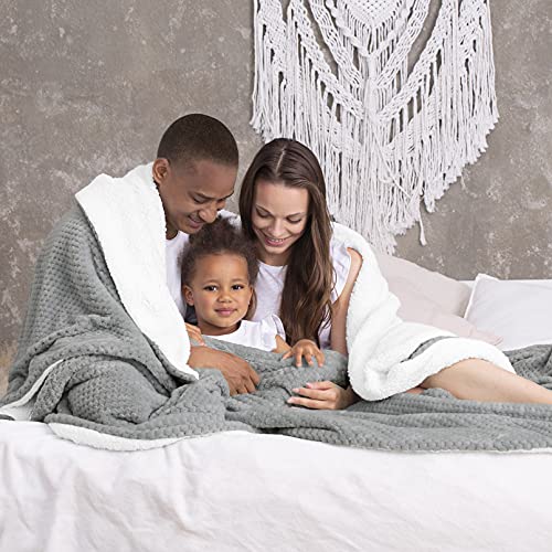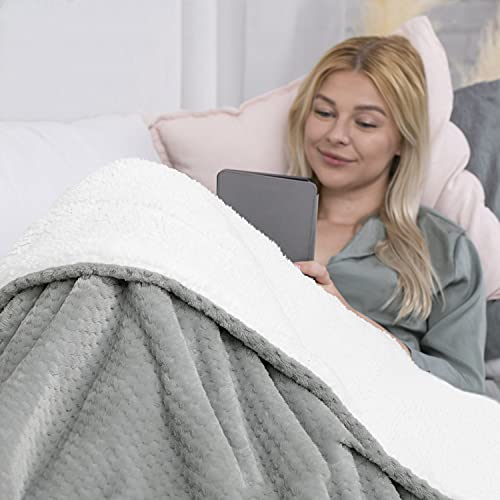 AmeliaHome Kuscheldecke 130×180 cm zarte Steppung Sherpa Lammfelloptik Wohndecke Shleepy Stahl