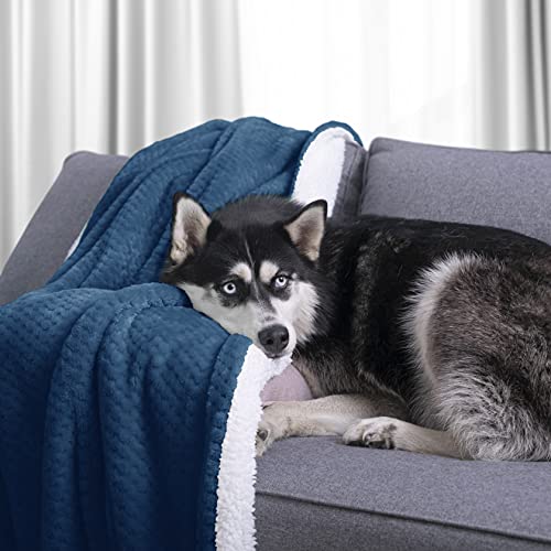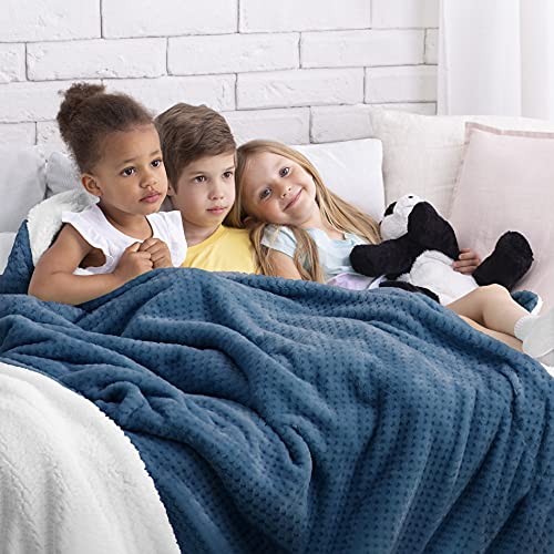 AmeliaHome Kuscheldecke 70×150 cm zarte Steppung Sherpa Lammfelloptik Wohndecke Shleepy Indigo