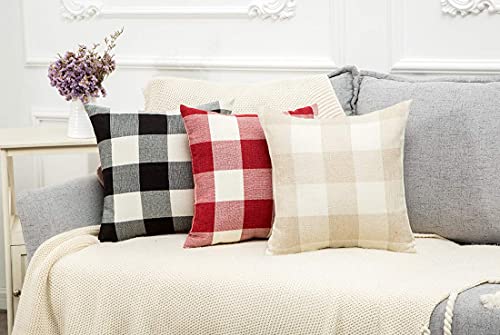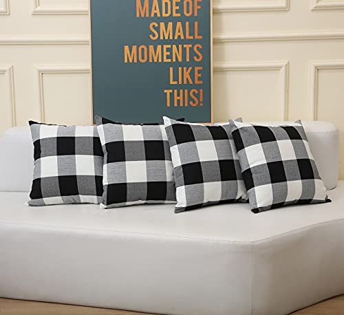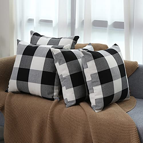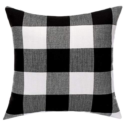 MKLFBT 2 Teil Bauernhaus Dekor Weihnachten Kissenbezüge 20×20 Schwarz Weiß Büffel Kariert Plaids Gefälle Wurfkissenbezüge Leinen Kissenbezüge für Sofa Couch Outdoor Camping