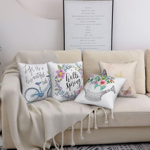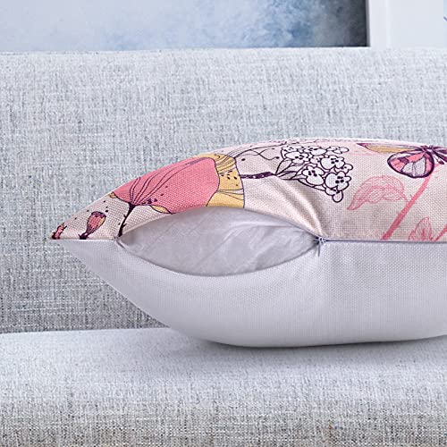 AMZQJD 4 Stück Kissenbezug Frühling Dekorative Kissenhülle Baumwolle Leinen Sie Kissenbezüge (40 x 40 cm, Rosa Schmetterling)