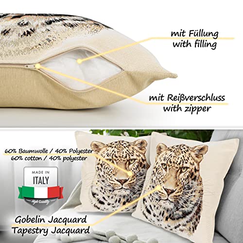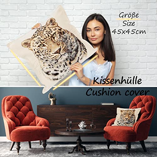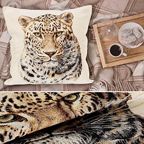 ANRO Kissenbezug Dekokissen Kissen Sofakissen Kissenbezüge Kissenhülle Gobelin Leopard 45x45cm mit Füllung