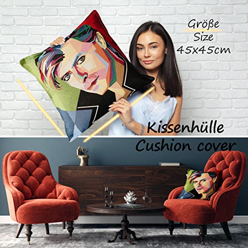 ANRO Kissenbezug Dekokissen Kissen Sofakissen Kissenbezüge Kissenhülle Gobelin Motiv David Bowie 45x45cm ohne Füllung