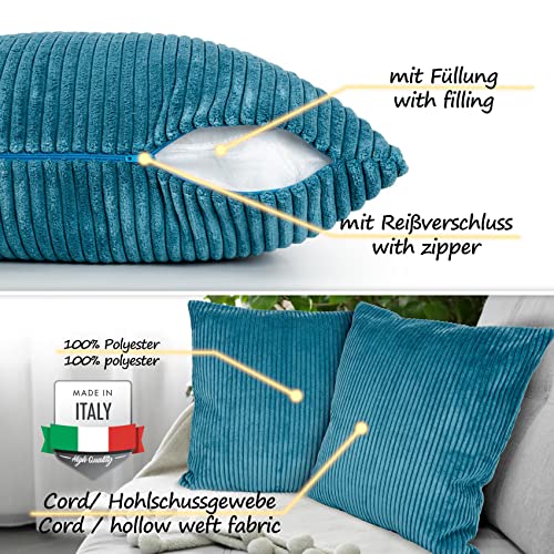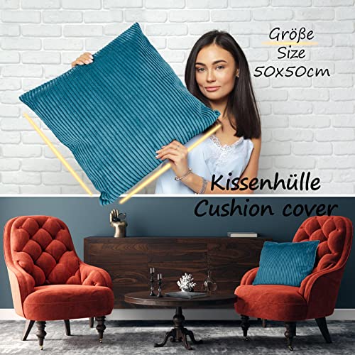 ANRO Kissenbezug Kissenhüllen Kissen Deko-Kissen Zierkissen Zierkissenbezug Kordsamt Türkis 50x50cm mit Füllung