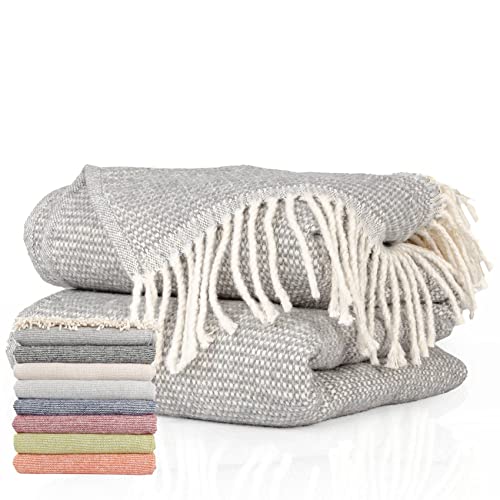 ANRO Tagesdecke Kuscheldecke Sofaüberwurf Couch Decke Sofadecke Wohnzimmerdecke Bettüberwurf mit Fransen Emma 150x200cm Grau